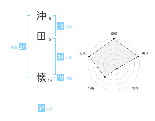 沖田 懐さんの総格は32画の5点!