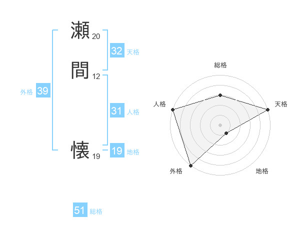 瀬間 懐さんを姓名の画数から五運を鑑定