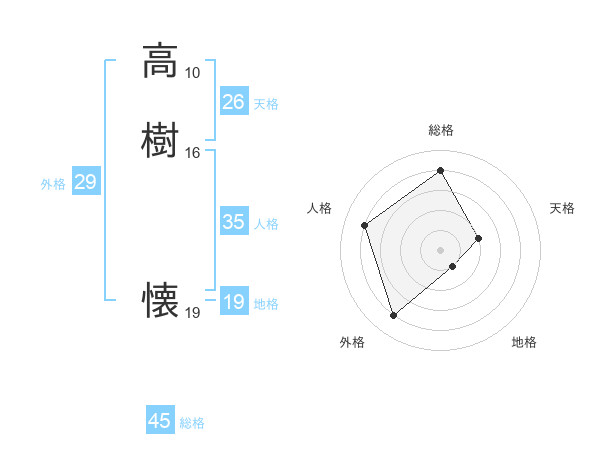 高樹 懐さんの総格は45画の4点!