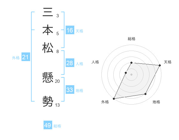 三本松 懸勢さんを姓名の画数から五運を鑑定