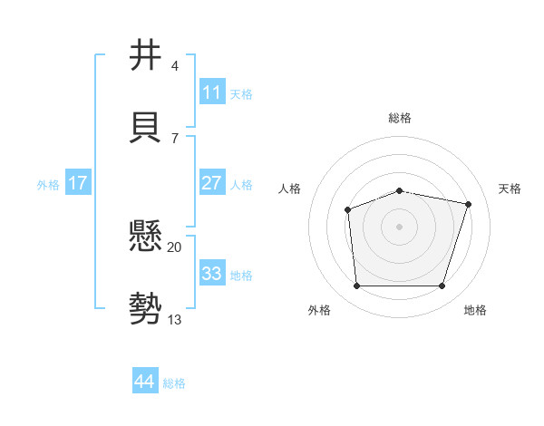 井貝 懸勢さんを姓名の画数から五運を鑑定