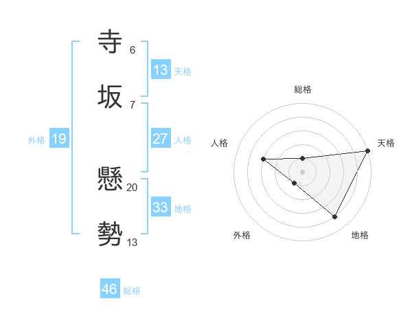 寺坂 懸勢さんの天格は13画の5点!