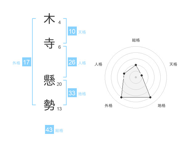 木寺 懸勢さんの総格は43画の2点!