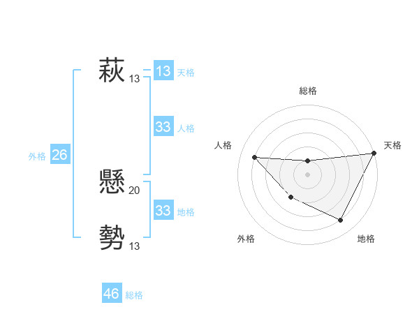 萩 懸勢さんを姓名の画数から五運を鑑定