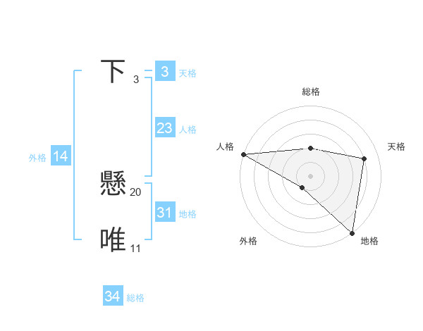 下 懸唯さんの総格は34画の2点!