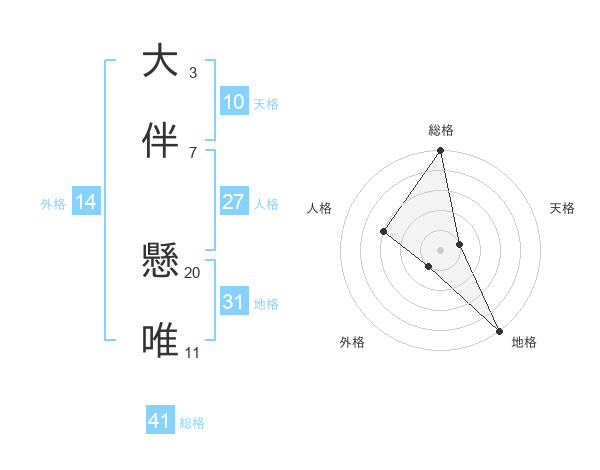 大伴 懸唯さんを姓名の画数から五運を鑑定