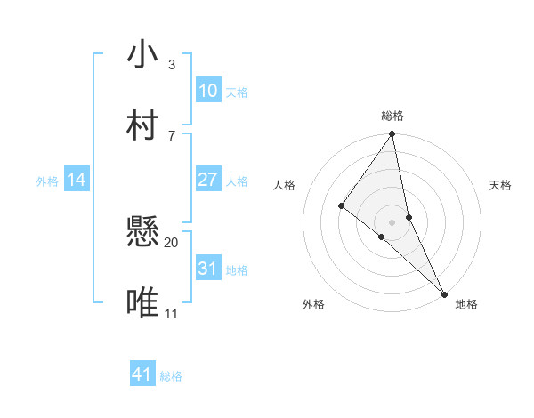 小村 懸唯さんを姓名の画数から五運を鑑定