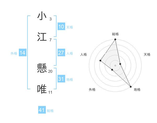 小江 懸唯さんの総格は41画の5点!