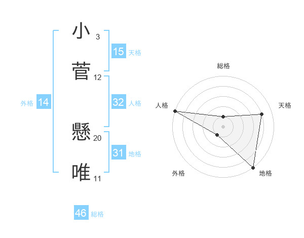 小菅 懸唯さんの外格は14画の1点!