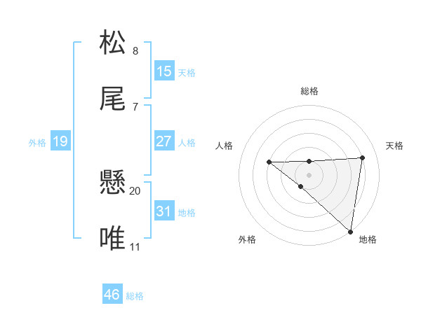 松尾 懸唯さんを姓名の画数から五運を鑑定