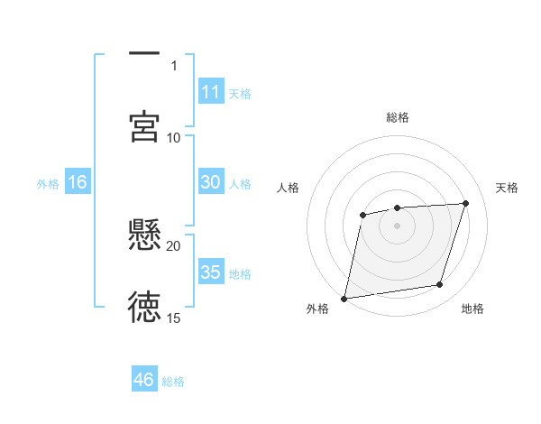 一宮 懸徳さんの総格は46画の1点!
