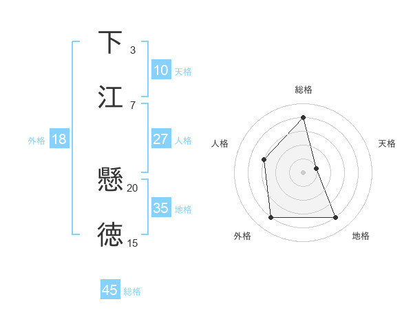 下江 懸徳さんの総格は45画の4点!