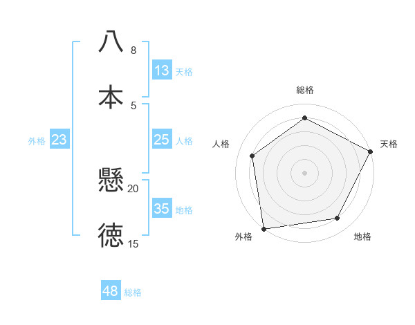 八本 懸徳さんを姓名の画数から五運を鑑定