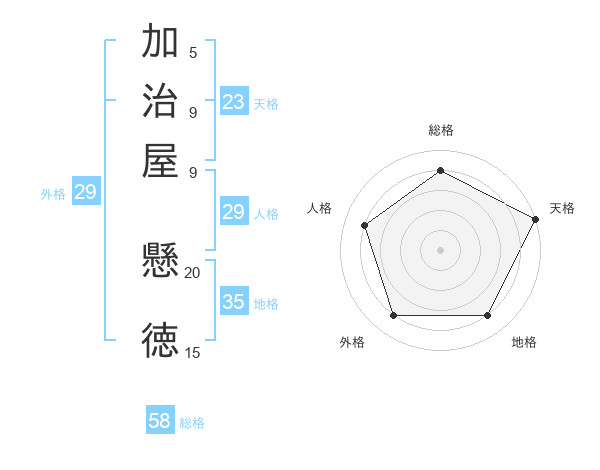 加治屋 懸徳さんを姓名の画数から五運を鑑定