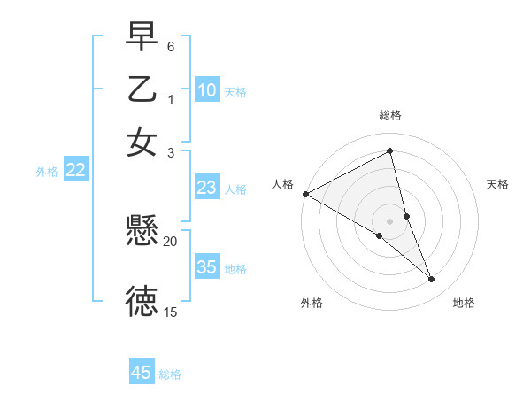 早乙女 懸徳さんの総格は45画の4点!