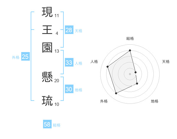 現王園 懸琉さんを姓名の画数から五運を鑑定