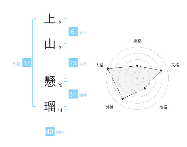 上山 懸瑠さんの総格は40画の2点!