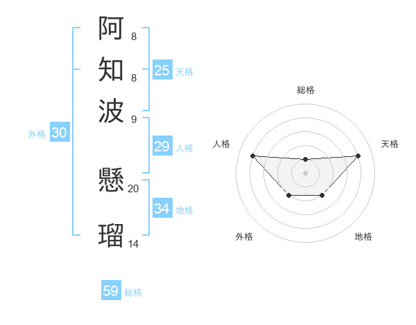 阿知波 懸瑠さんを姓名の画数から五運を鑑定