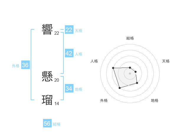 響 懸瑠さんを姓名の画数から五運を鑑定