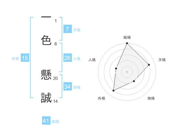 一色 懸誠さんを姓名の画数から五運を鑑定