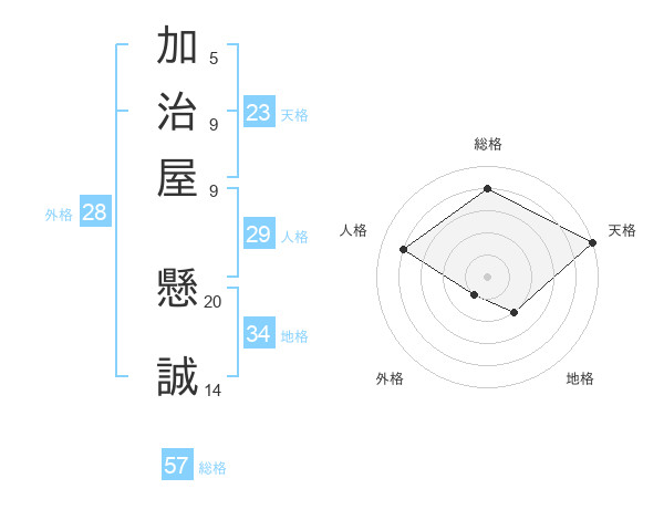 加治屋 懸誠さんを姓名の画数から五運を鑑定