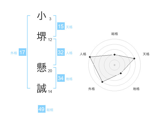 小堺 懸誠さんを姓名の画数から五運を鑑定