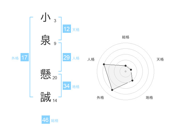 小泉 懸誠さんを姓名の画数から五運を鑑定