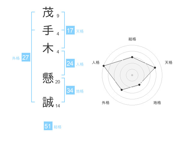 茂手木 懸誠さんを姓名の画数から五運を鑑定