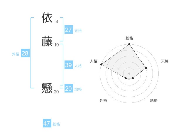 依藤 懸さんの総格は47画の5点!