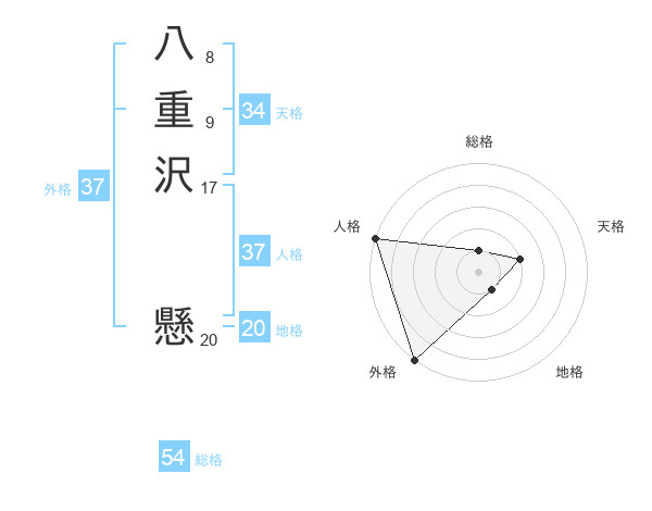 八重沢 懸さんを姓名の画数から五運を鑑定