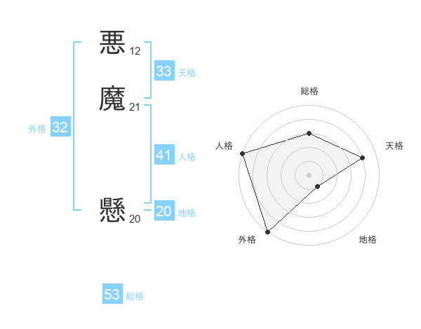 悪魔 懸さんを姓名の画数から五運を鑑定