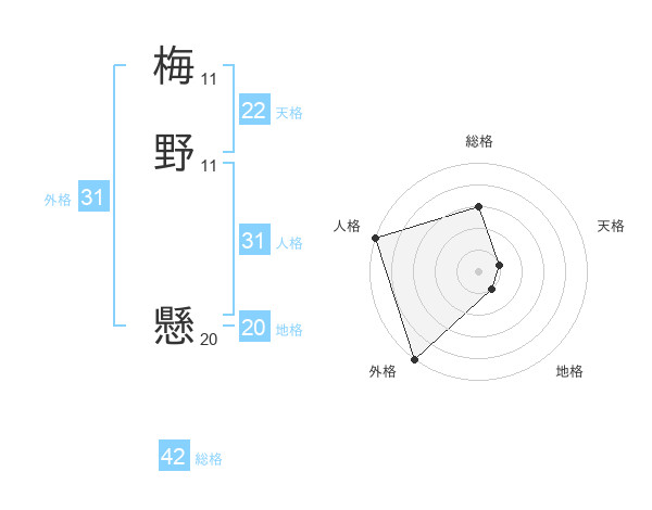 梅野 懸さんを姓名の画数から五運を鑑定