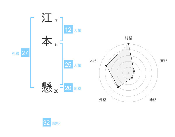 江本 懸さんの総格は32画の5点!