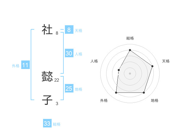 社 懿子さんの総格は33画の4点!