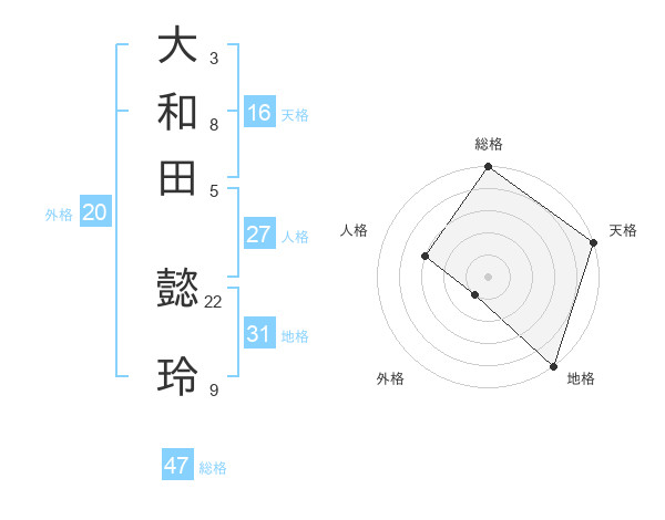 大和田 懿玲さんの総格は47画の5点