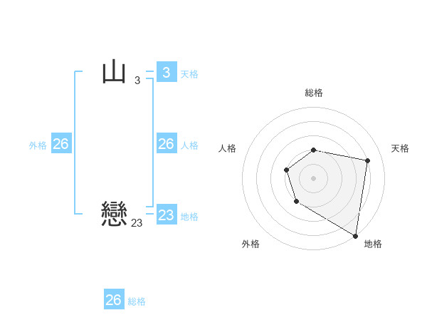 山 戀さんの総格は26画の2点!