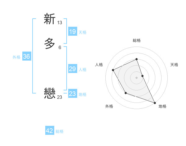 新多 戀さんの総格は42画の3点!