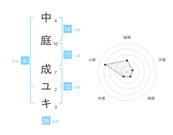 中庭 成ユキさんを姓名の画数から五運を鑑定