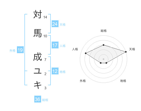 対馬 成ユキさんの天格は24画の5点!