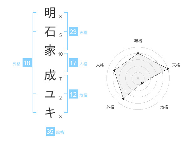 明石家 成ユキさんを姓名の画数から五運を鑑定