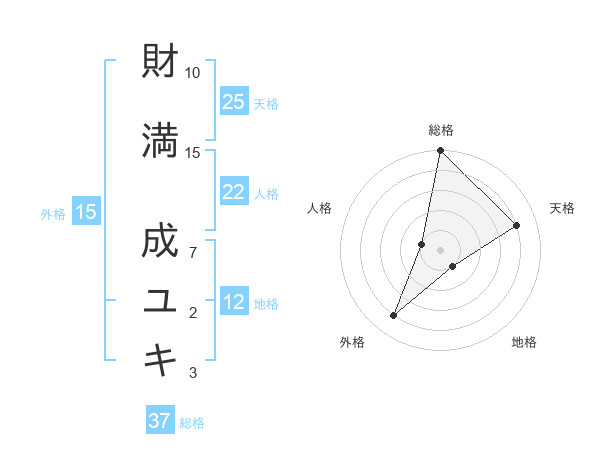 財満 成ユキさんを姓名の画数から五運を鑑定