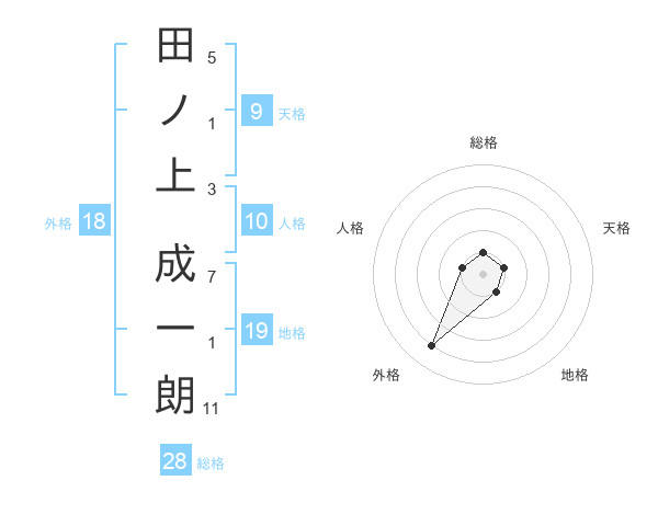 田ノ上 成一朗さんの総格は28画の1点!