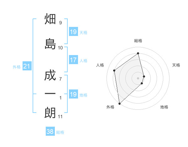 畑島 成一朗さんの総格は38画の4点!
