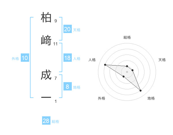 柏﨑 成一さんを姓名の画数から五運を鑑定