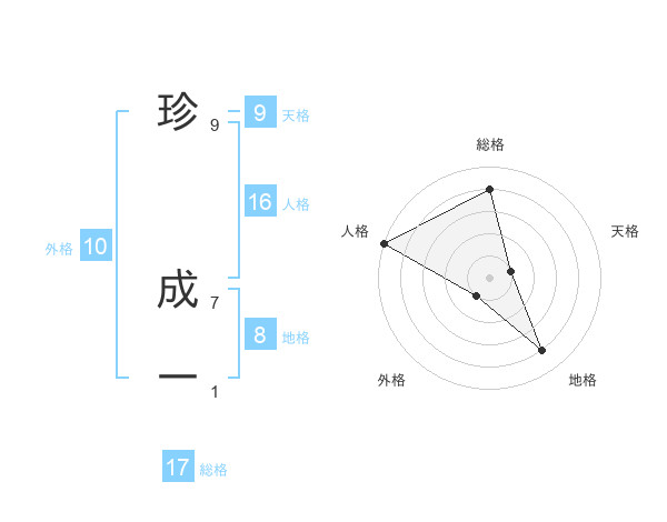 珍 成一さんの総格は17画の4点!