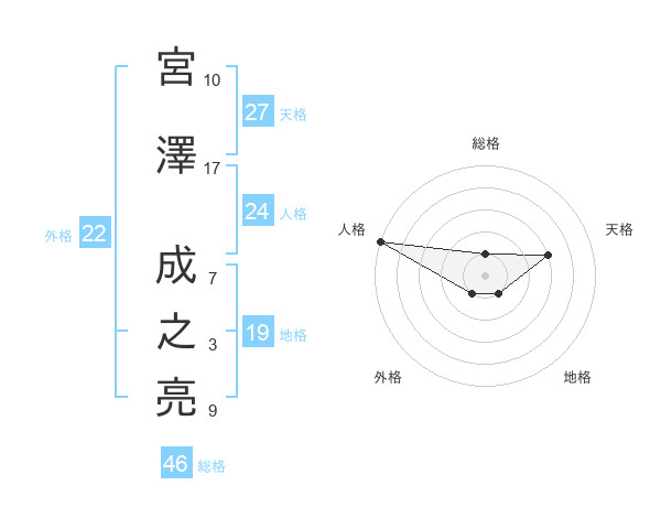 宮澤 成之亮さんの総格は46画の1点