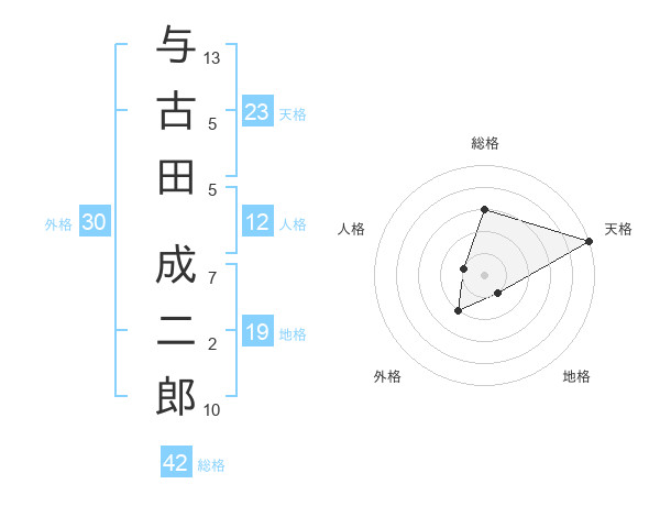 与古田 成二郎さんを姓名の画数から五運を鑑定