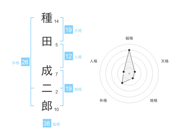 種田 成二郎さんの総格は38画の4点!