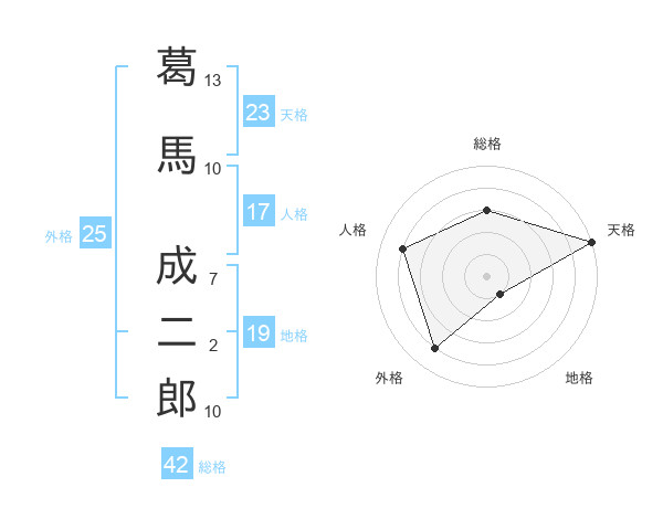 葛馬 成二郎さんを姓名の画数から五運を鑑定