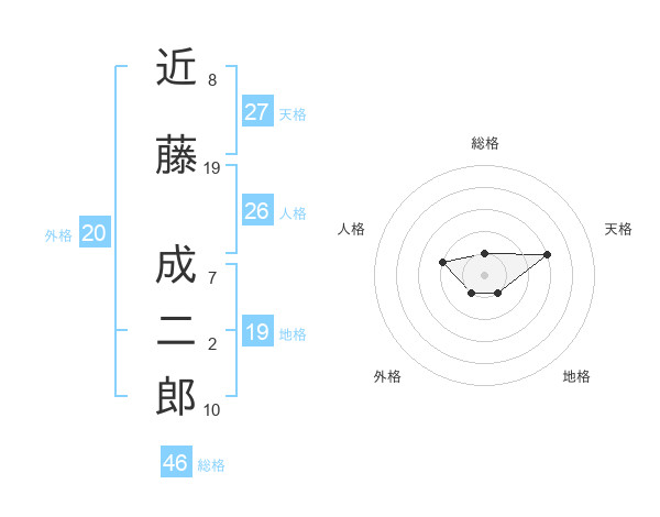 近藤 成二郎さんを姓名の画数から五運を鑑定